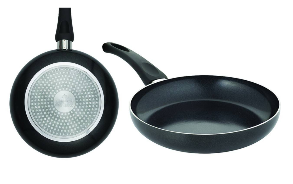 Patelnia aluminiowa charakteryzuje się podwójną nieprzywierającą powłokę ceramiczną, która posiada właściwości zapobiegające przywieraniu potraw podczas smażenia.