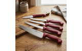 Antypoślizgowa rękojeść noża ma ergonomiczny kształt zapewniający komfort pracy. Została ona wykonana z poliamidu wzmacnianego włóknem szklanym. To rękojeść, która pozwala na zachowanie wysokiego poziomu higieny w kuchni i jednocześnie jest odporna na działanie tłuszczu i wilgoci. Wyrazisty, czerwony kolor pozwala na bezproblemowe odnalezienie narzędzia wśród innych produktów i akcesoriów.