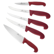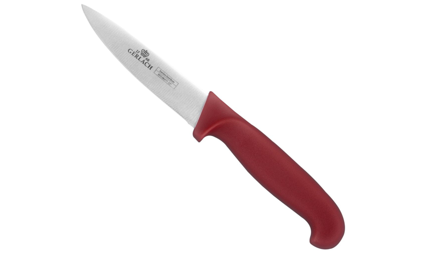 Antypoślizgowa rękojeść noża ma ergonomiczny kształt zapewniający komfort pracy. Została ona wykonana z poliamidu wzmacnianego włóknem szklanym. To rękojeść, która pozwala na zachowanie wysokiego poziomu higieny w kuchni i jednocześnie jest odporna na działanie tłuszczu i wilgoci. Wyrazisty, czerwony kolor pozwala na bezproblemowe odnalezienie narzędzia wśród innych produktów i akcesoriów.