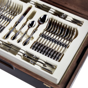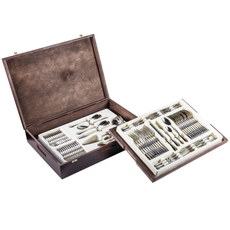 68-elementowy komplet dla dwunastu osób charakteryzuje się doskonałym wyważeniem sztućców, wyjątkową precyzją krojenia oraz pewnością długoletniej satysfakcji z produktu.